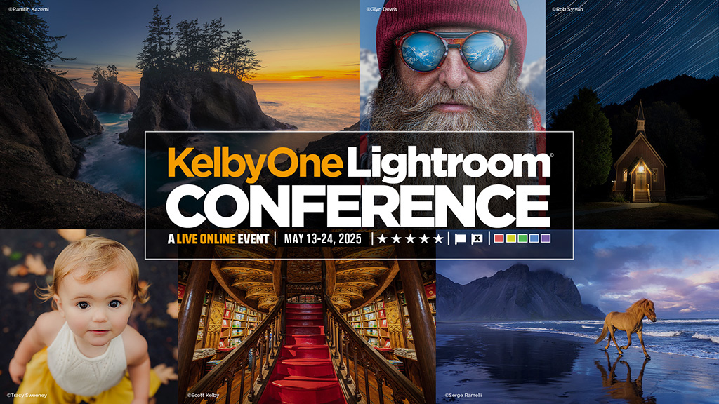 This live-streamed event is open to everyone—photographers from all over are already signing up (we sneaked the news on my weekly photography show, The Grid)—so sign up early to get the best pricing. You can get all the conference details and register right here: The Lightroom Conference.