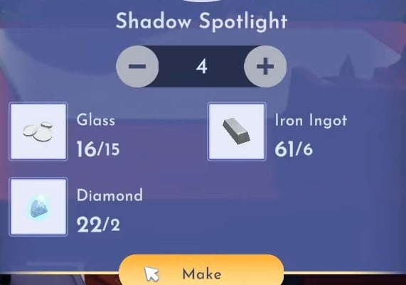 Gather the ingredients to craft the Shadow Spotlight