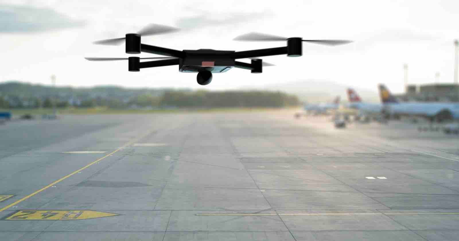 Two men were arrested for flying a drone over a terminal on the runway of an airport while allegedly trying to take a photo of a food stand.