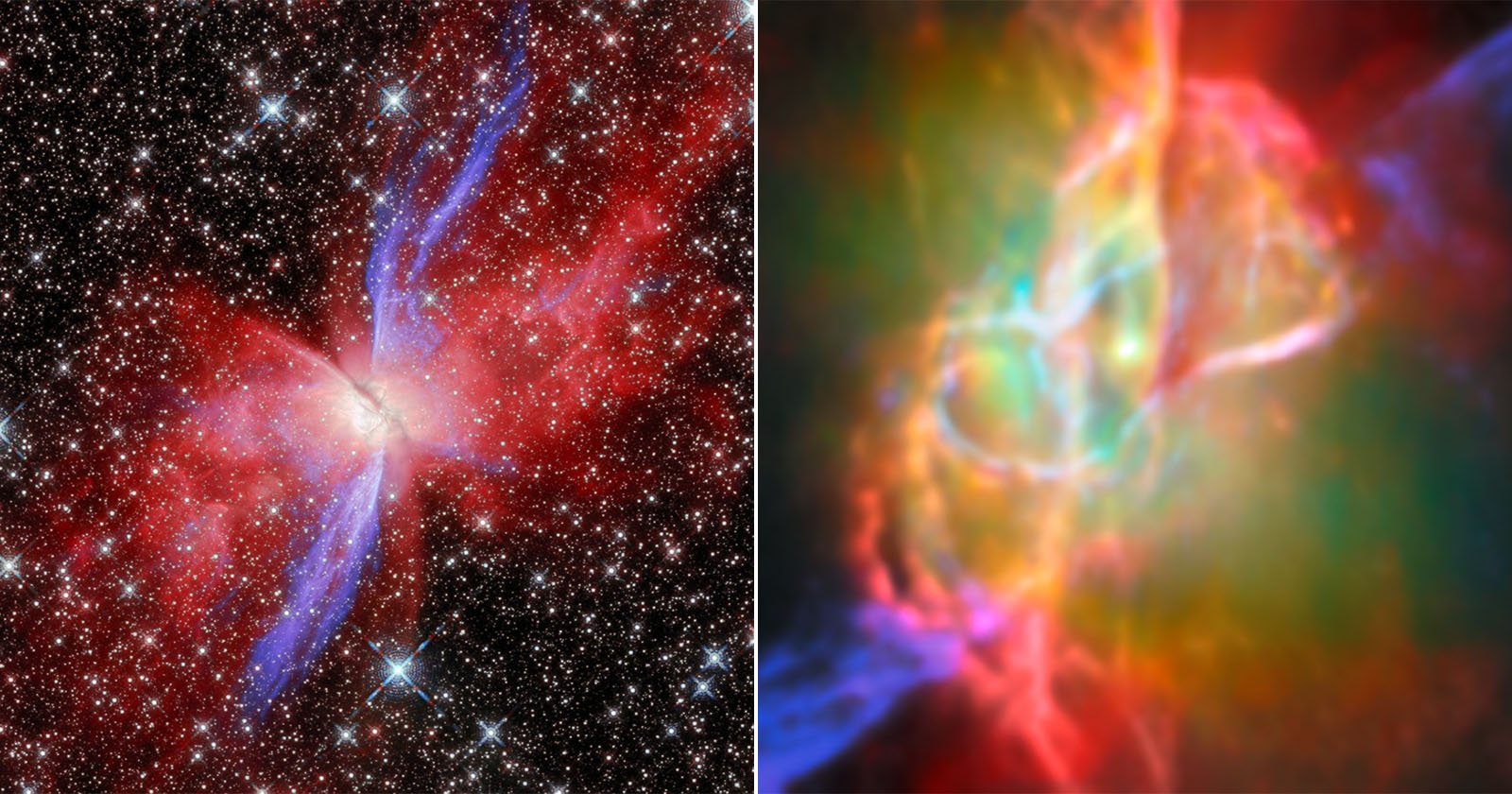 The NASA/ESA/CSA James Webb Space Telescope (JWST) peered at the Butterfly Nebula using its Mid-InfraRed Instrument (MIRI) camera, uncovering never-before-seen details of the nebula’s heart. This is the first time scientists have seen the super-hot star powering the beautiful, bug-like nebula.