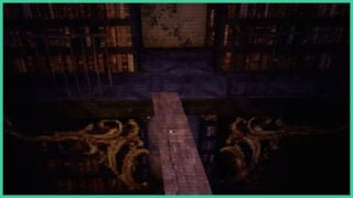 When walking around the library in the mansion and heading up the library stairs, there is a gap between the two sides. When interacting with said gap, the game prompts you to place down a wooden plank.